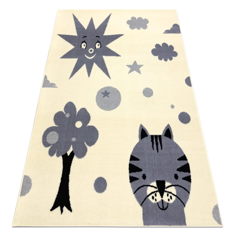 Kremowy dywan z motywem słoneczka, który rozjaśni pokój dziecka i stworzy ciepłą atmosferę do zabawy.