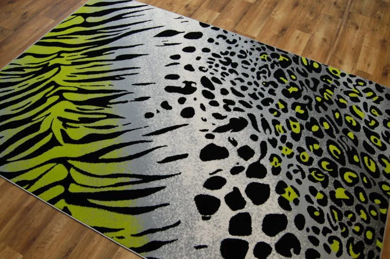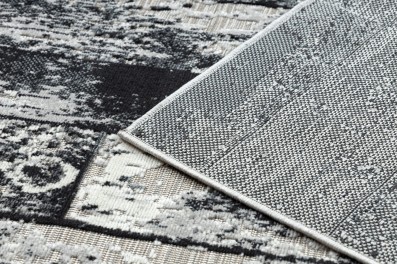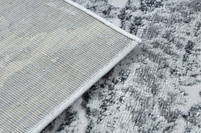 Szary dywan z abstrakcyjnym wzorem, który doskonale wpisze się w nowoczesny salon lub pokój.