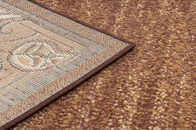 Brązowy dywan z tradycyjnym wzorem, który doskonale sprawdzi się w salonie, wprowadzając ciepły akcent do wnętrza.