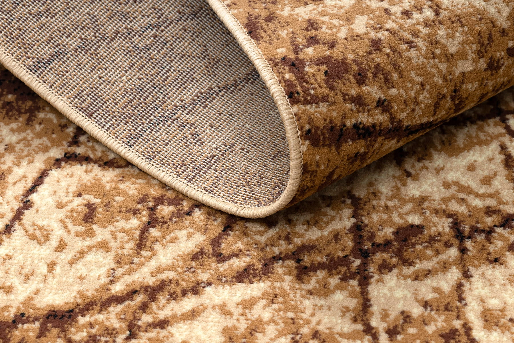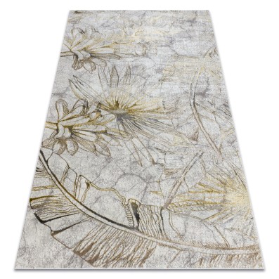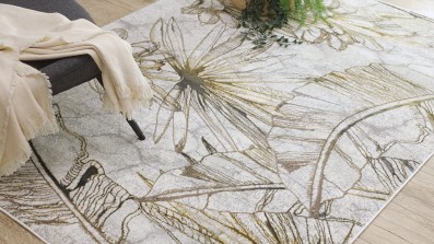 Beżowy dywan z delikatnym roślinnym motywem, który doskonale sprawdzi się w salonie, wprowadzając naturalny charakter do wnętrza.