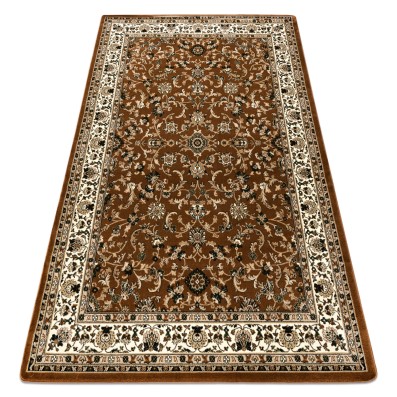 Beżowy dywan z motywem zegarów w tradycyjnym stylu, który doskonale sprawdzi się w salonie lub pokoju, dodając wnętrzu klasycznego charakteru.