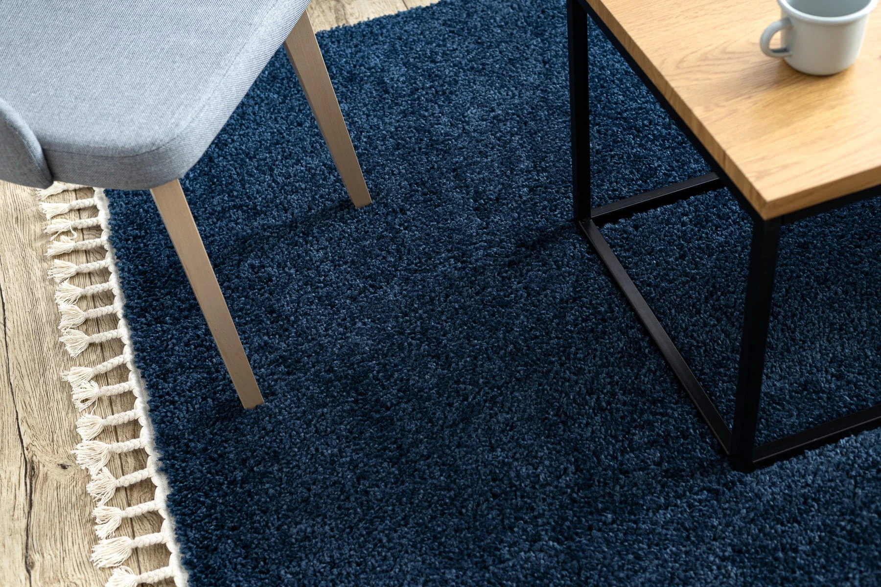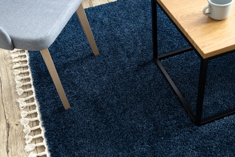 Granatowy dywan shaggy z runem 25 mm w marokańskim stylu, który wprowadzi do salonu elegancki akcent kolorystyczny.