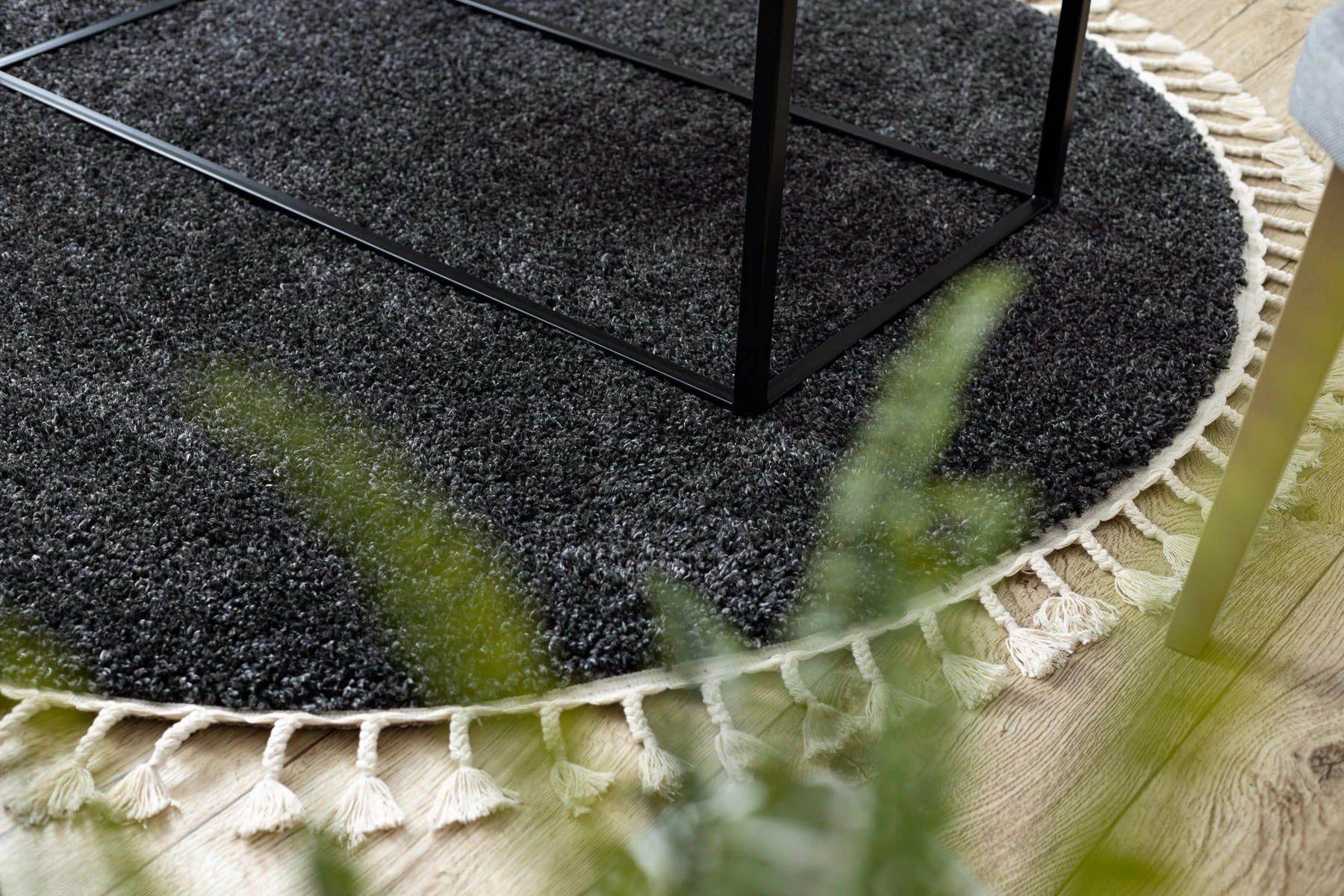 Szary dywan shaggy z runem 25 mm w stylu berberyjskim, który doda salonowi elegancki, egzotyczny charakter.