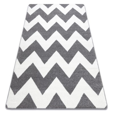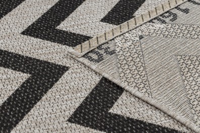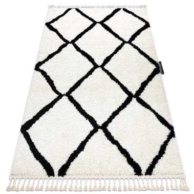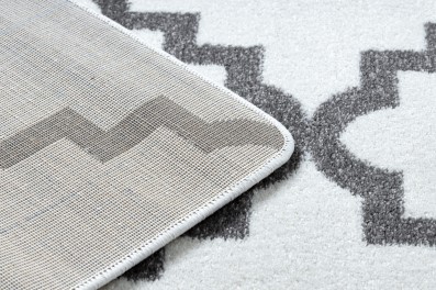 Szaro-kremowy dywan shaggy z runem 25 mm i geometrycznym wzorem, który wprowadzi do salonu orientalny klimat i przytulność.