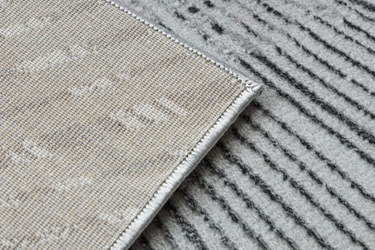 Szary dywan z abstrakcyjnym wzorem linii, który wprowadzi do salonu nowoczesny charakter.