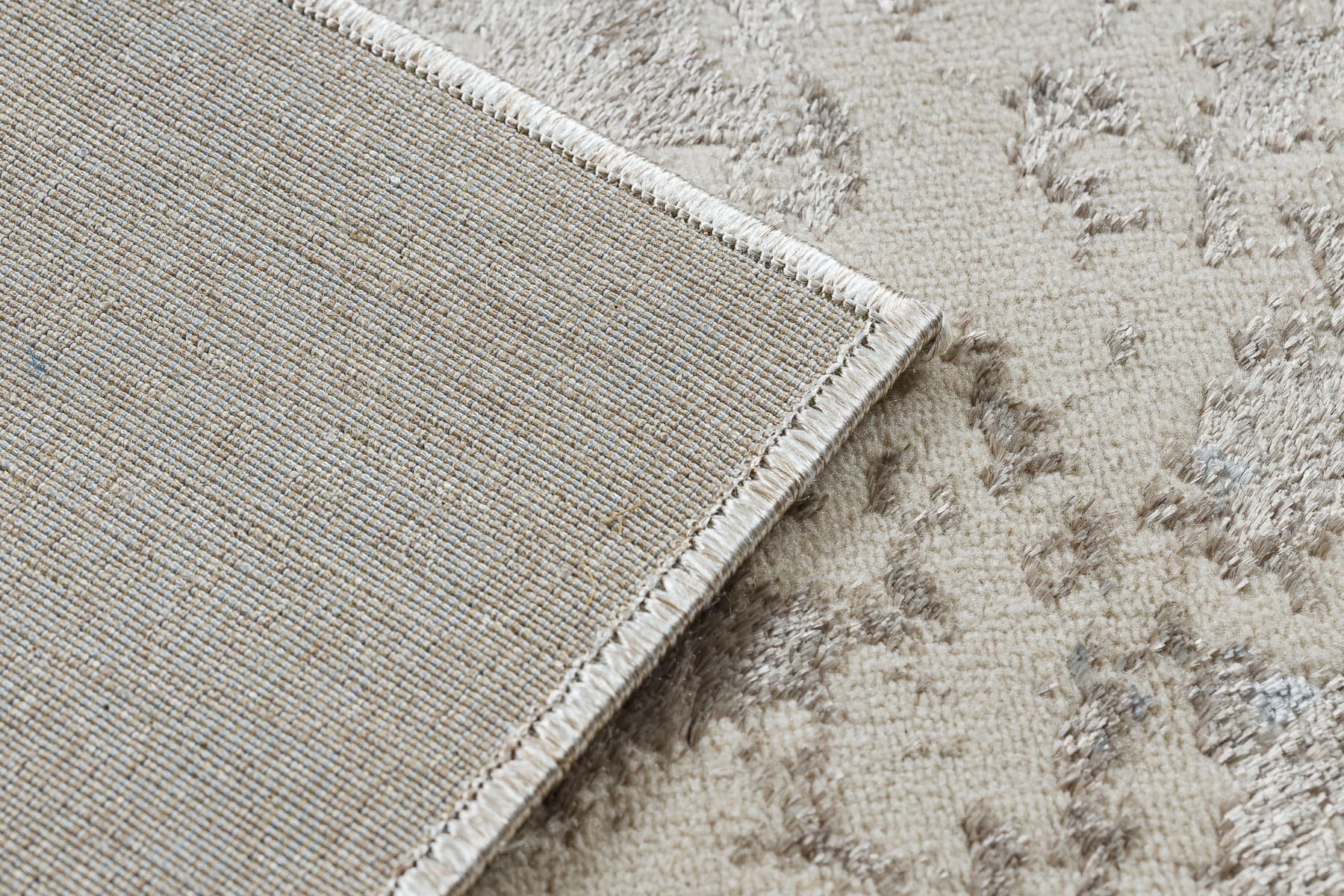 Beżowy dywan z abstrakcyjnym wzorem, który wprowadzi do korytarza ciepły i nowoczesny akcent.
