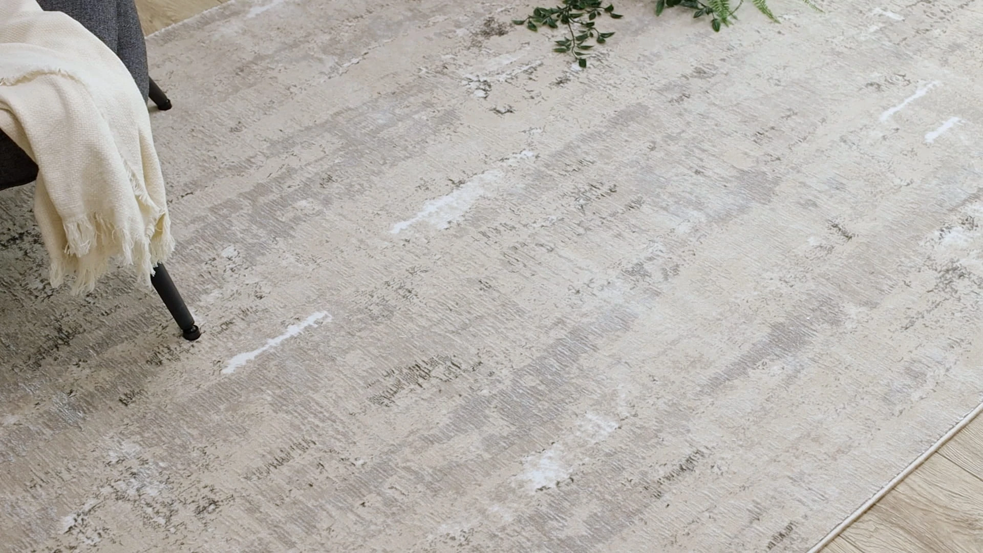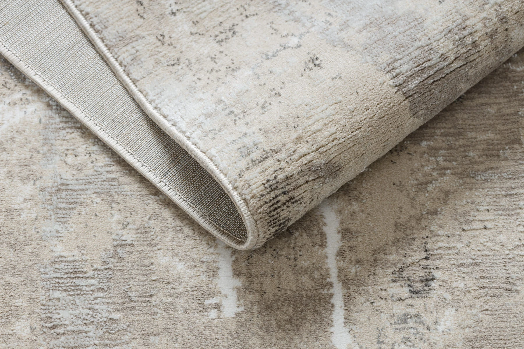 Beżowo-kremowy dywan z abstrakcyjnym wzorem, który wprowadzi do wnętrza spokojny, harmonijny charakter.