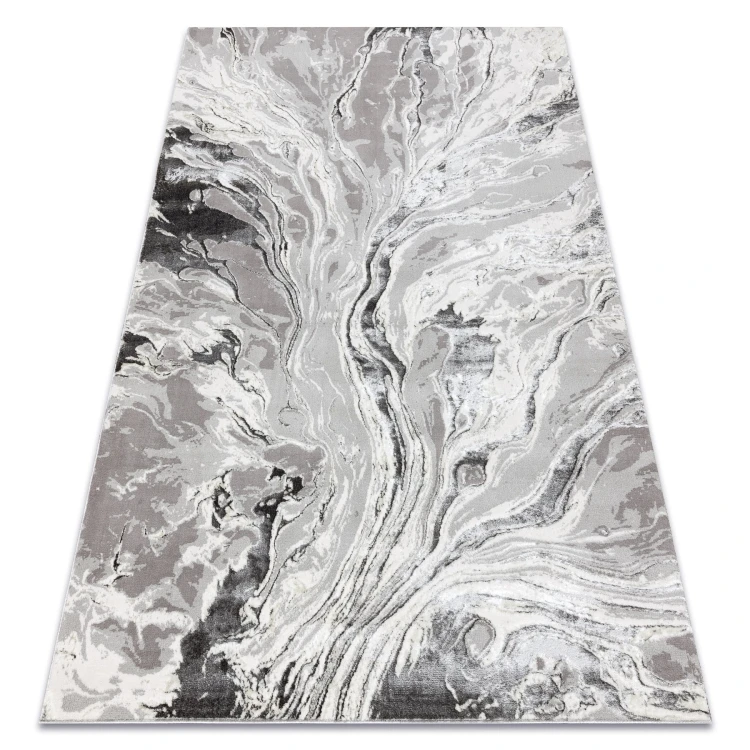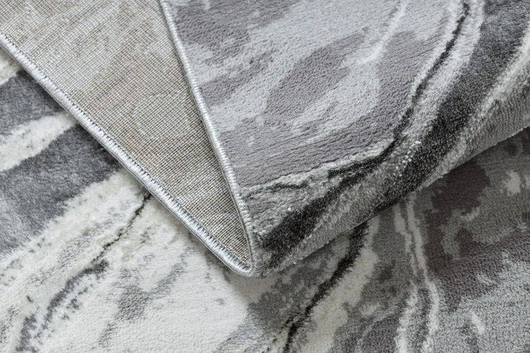 Szaro-kremowy dywan z abstrakcyjnym wzorem, który doskonale wpisze się w nowoczesny salon lub pokój.