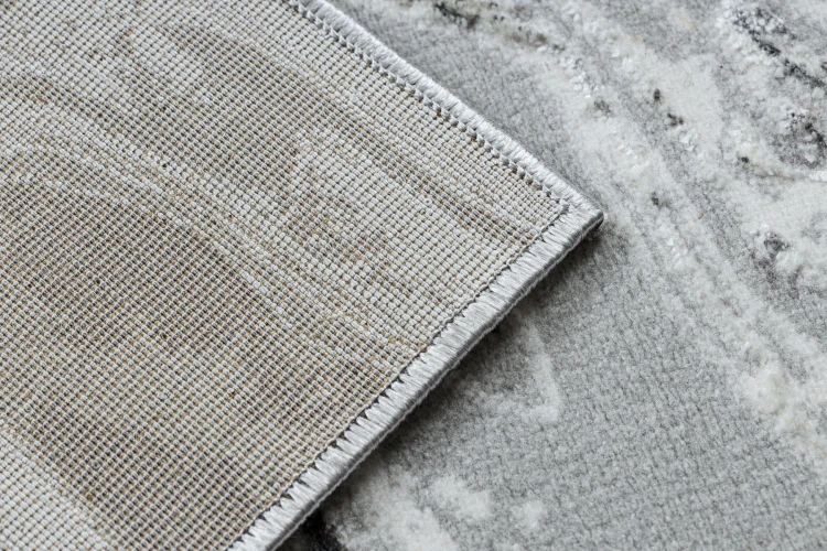Szaro-kremowy dywan z abstrakcyjnym wzorem, który doskonale wpisze się w nowoczesny salon lub pokój.