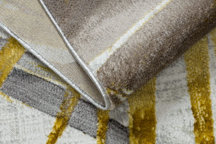 Złoto-szary dywan z roślinnym wzorem, który wprowadzi do salonu elegancki i ciepły charakter.