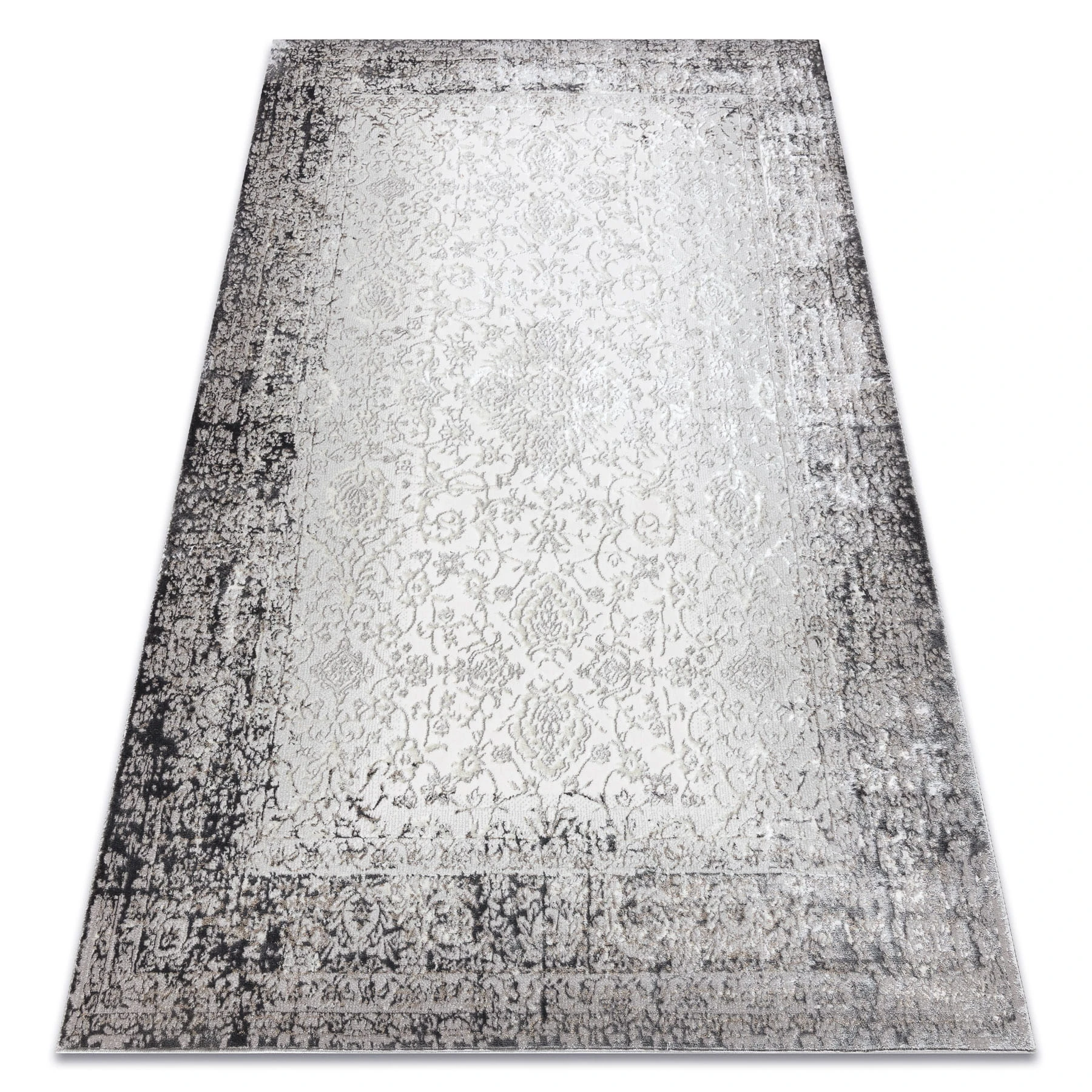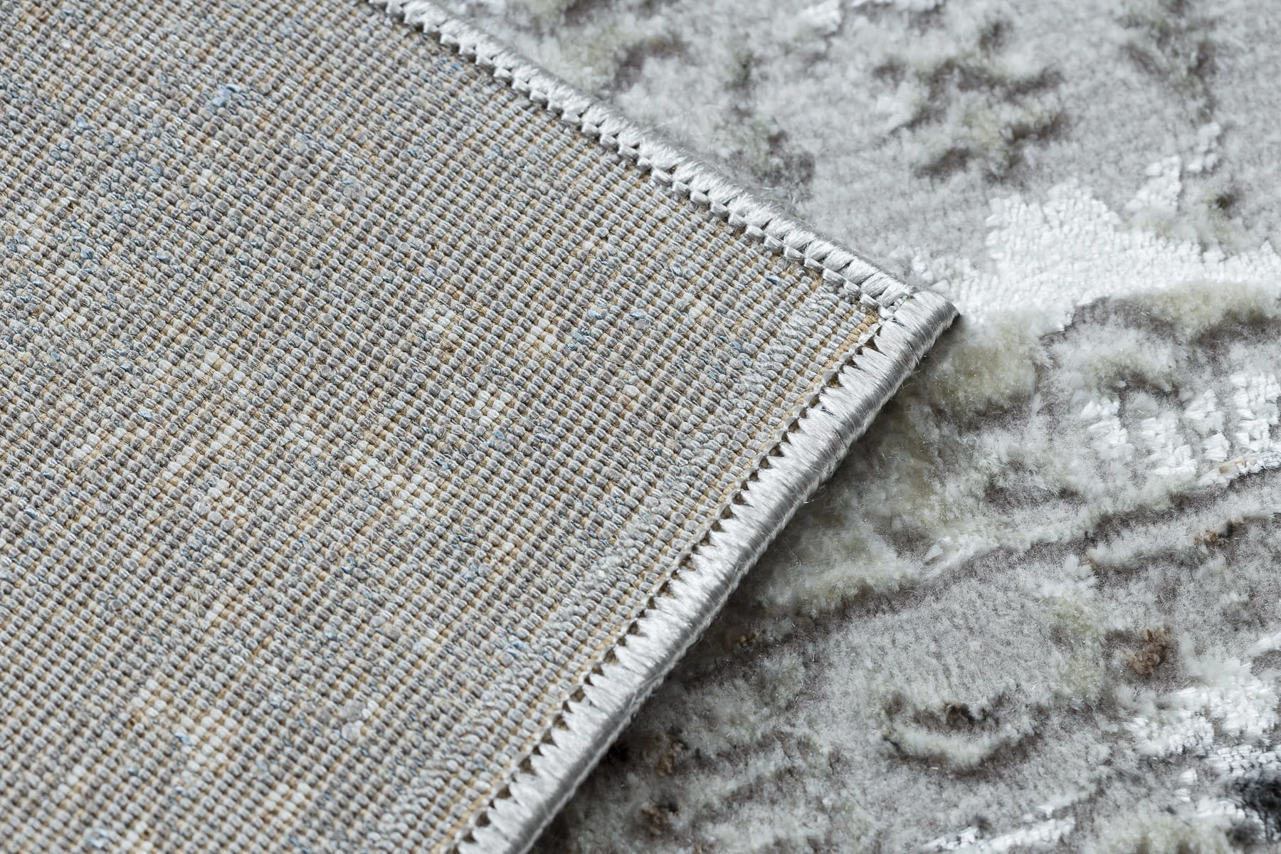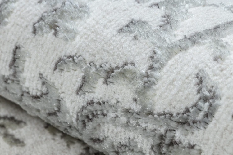 Kremowo-szary dywan z abstrakcyjnym wzorem, który doskonale sprawdzi się w korytarzu, dodając mu nowoczesny charakter.