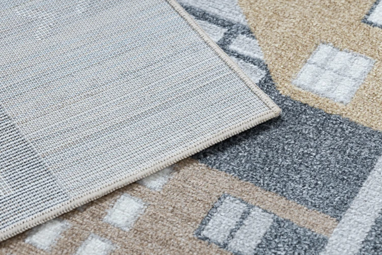 Kremowo-szary dywan z motywem ulicy, który stworzy idealną przestrzeń do zabawy w pokoju dziecka.