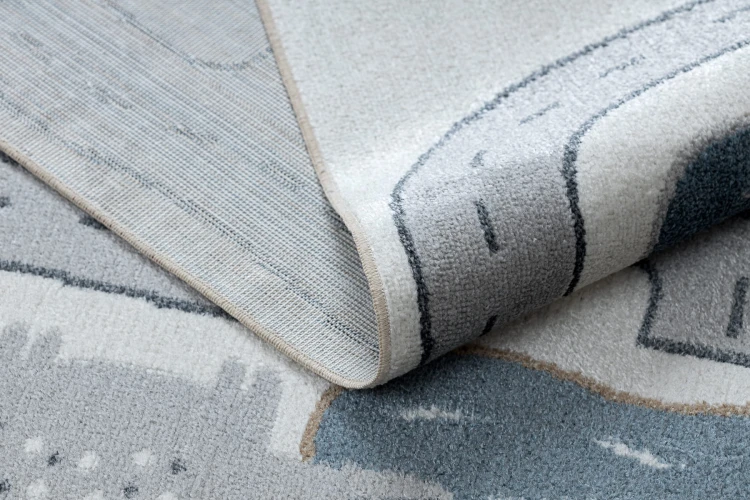 Szary dywan z motywem ulicy, który stworzy przestrzeń do zabawy i zachęci dziecko do kreatywnych przygód.