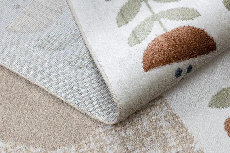 Kremowy dywan z motywem zwierząt leśnych, który ożywi pokój dziecka i stworzy przestrzeń do zabawy.