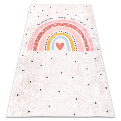 Kremowy dywan z motywem zwierząt leśnych, który ożywi pokój dziecka i stworzy przestrzeń do zabawy.