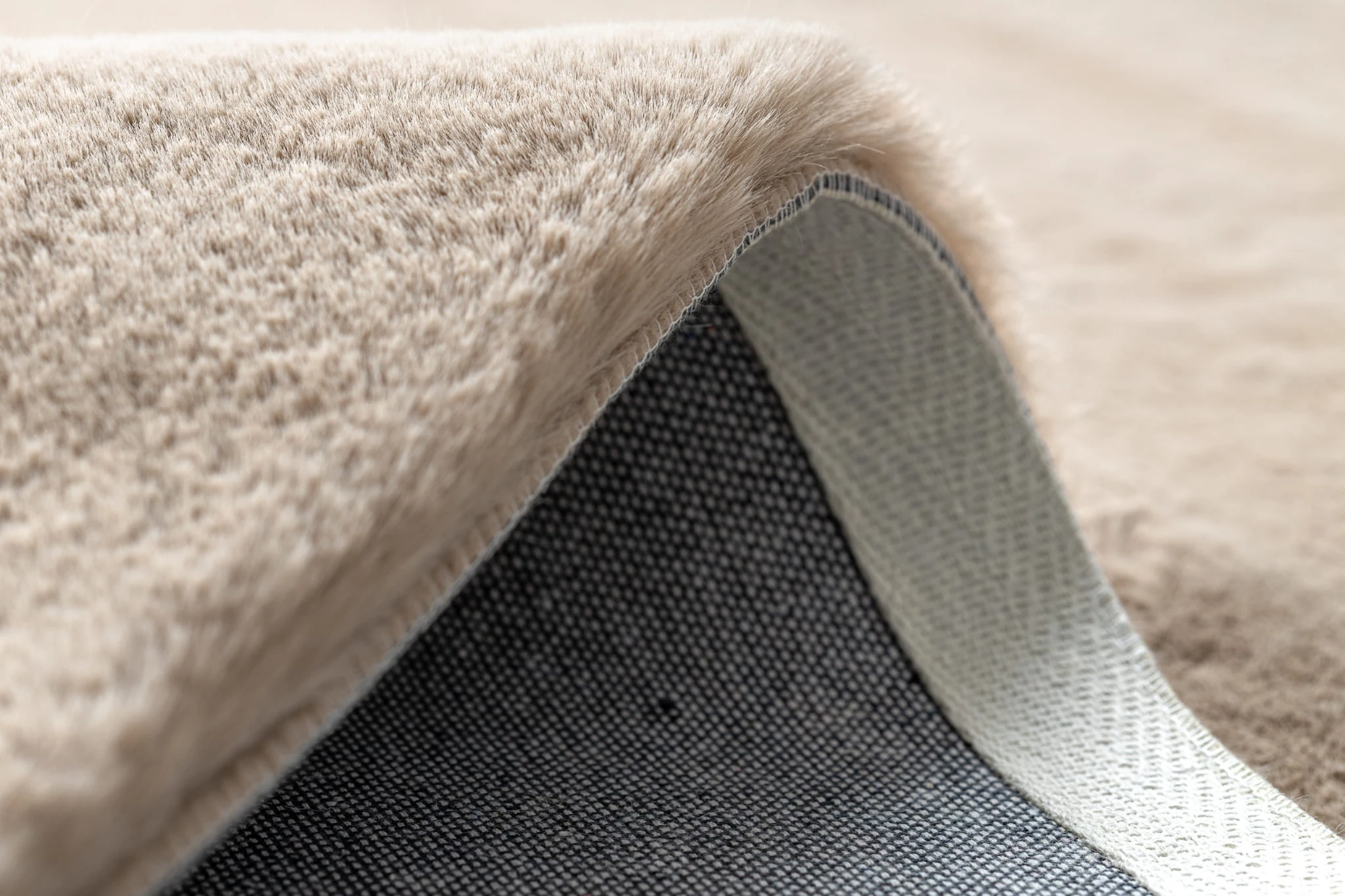 Beżowy dywan shaggy z runem 30 mm, który stworzy przytulną atmosferę w salonie lub pokoju.