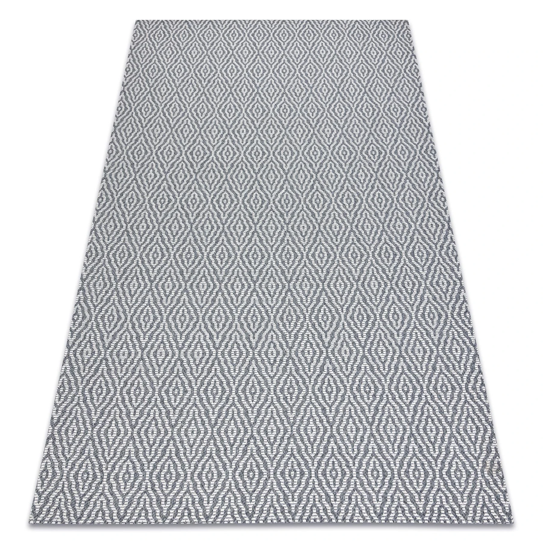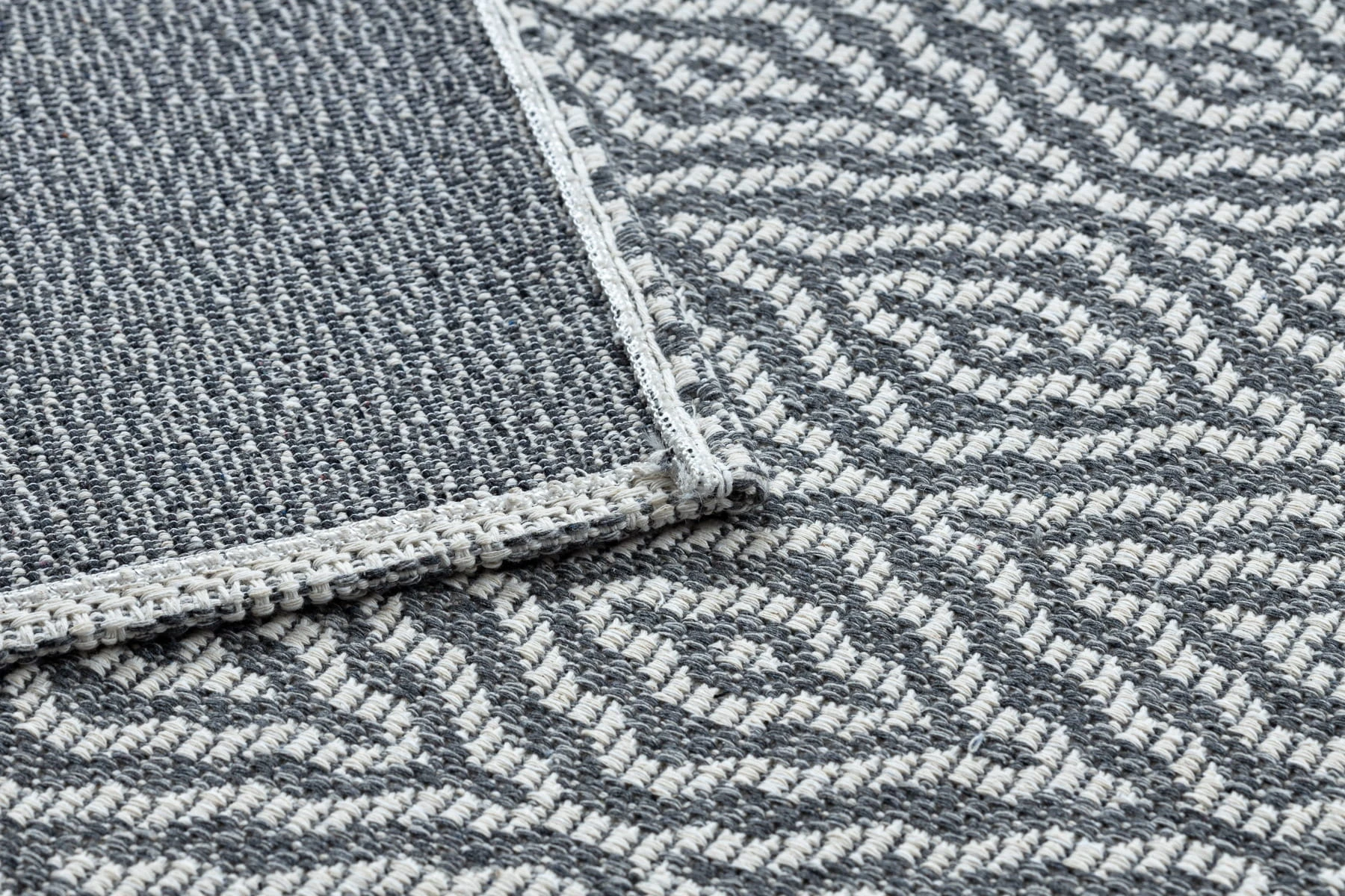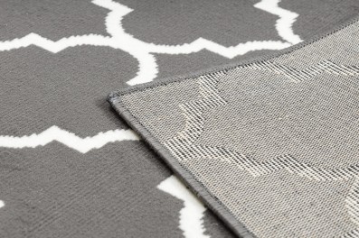 Antracytowo-kremowy dywan z geometrycznym wzorem, który doskonale wkomponuje się w nowoczesny salon lub pokój.