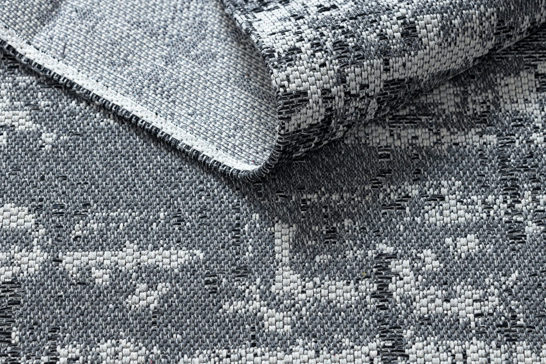 Szaro-antracytowy dywan z abstrakcyjnym wzorem, który doskonale wpisze się w nowoczesny salon lub pokój.