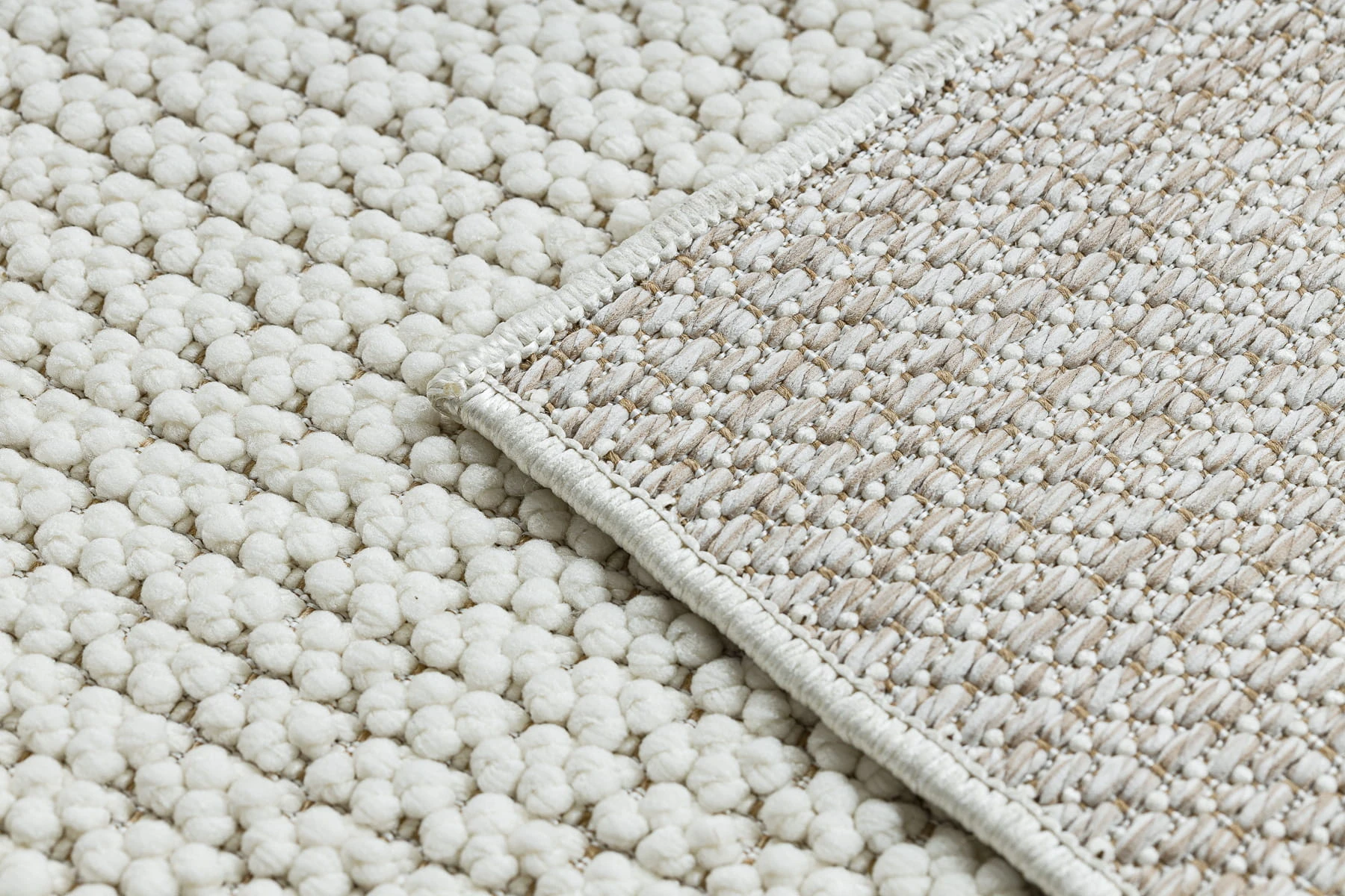 Biały dywan z geometrycznym wzorem, który rozjaśni salon i nada mu nowoczesny charakter.