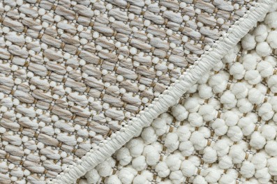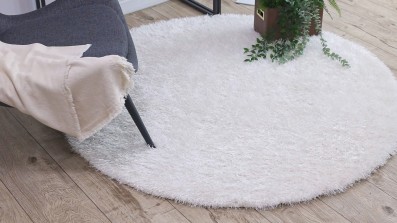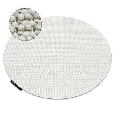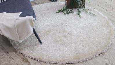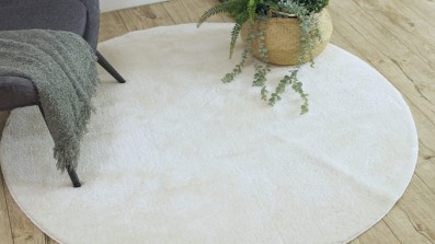 Okrągły kremowy dywan, który subtelnie ociepli salon lub pokój, tworząc spokojną bazę dla całego wnętrza.