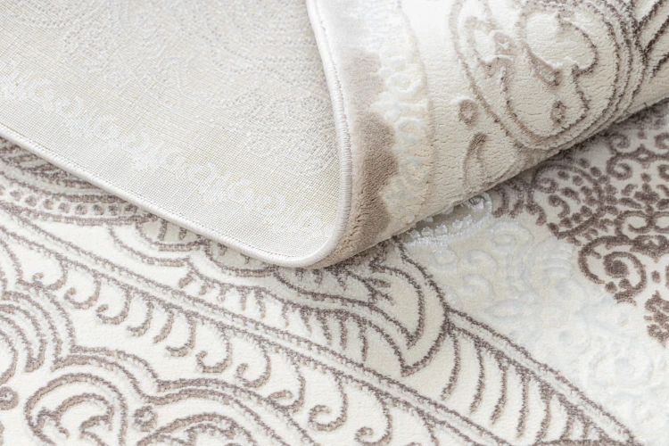 Beżowy dywan z abstrakcyjnym wzorem, który wprowadzi do salonu ciepły, naturalny akcent i stonowaną elegancję.