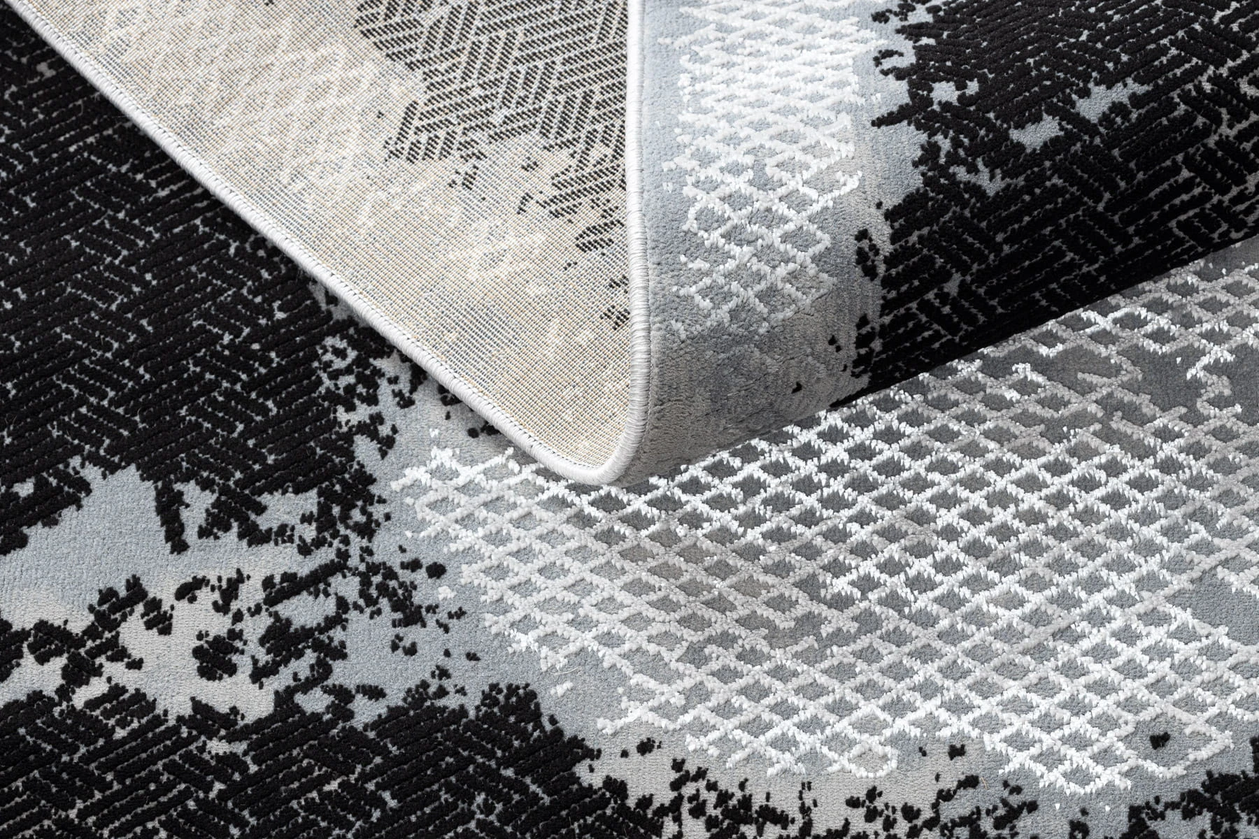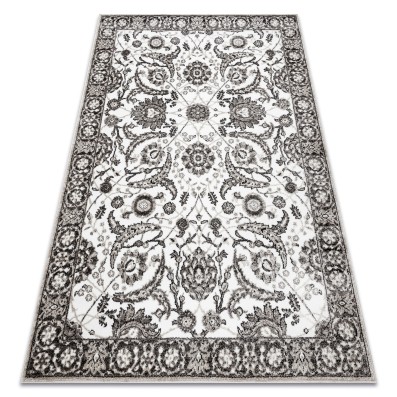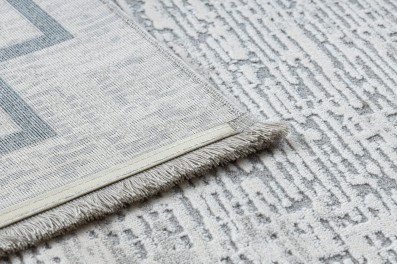 Prostokątny dywan z kontrastową ramką w czerni i jasnoszarości, który wprowadzi do wnętrza elegancki, geometryczny akcent.