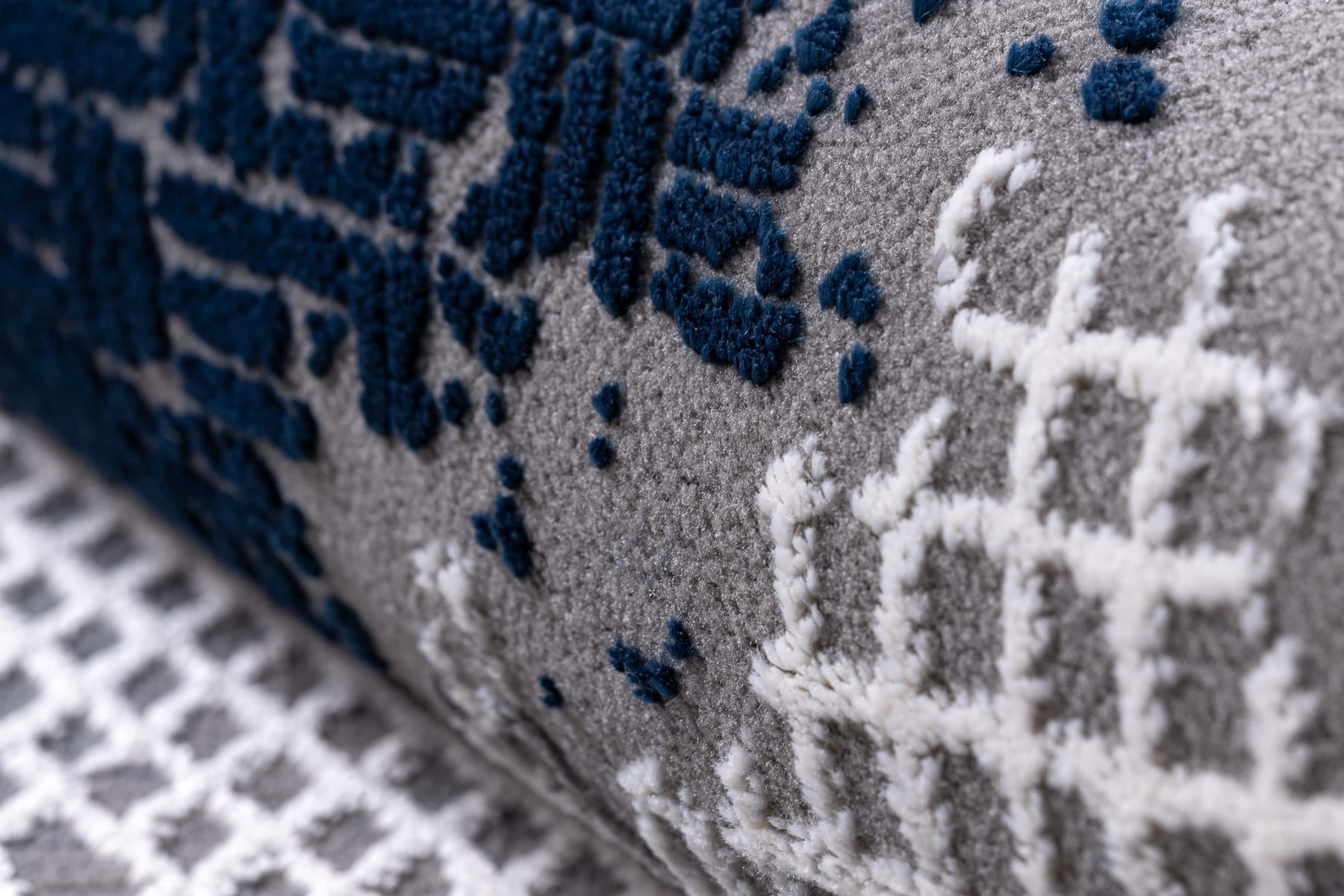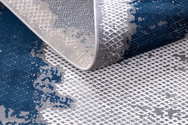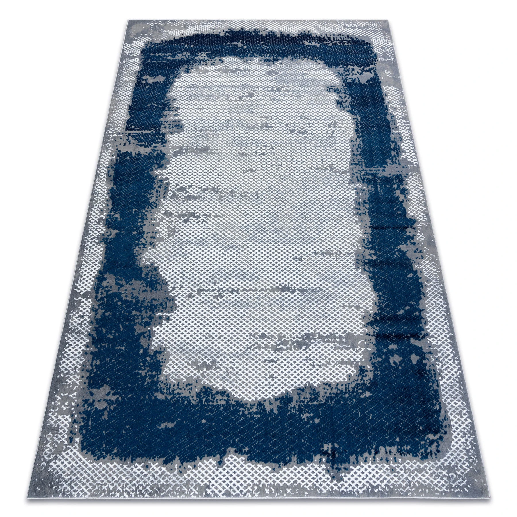 Niebiesko-szary dywan z dekoracyjną ramką, który doda wnętrzu elegancki akcent kolorystyczny.