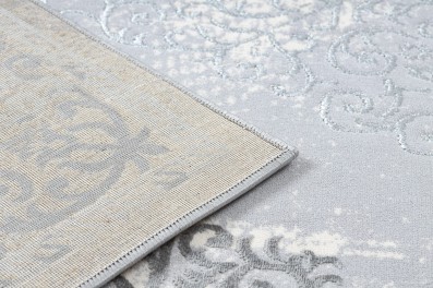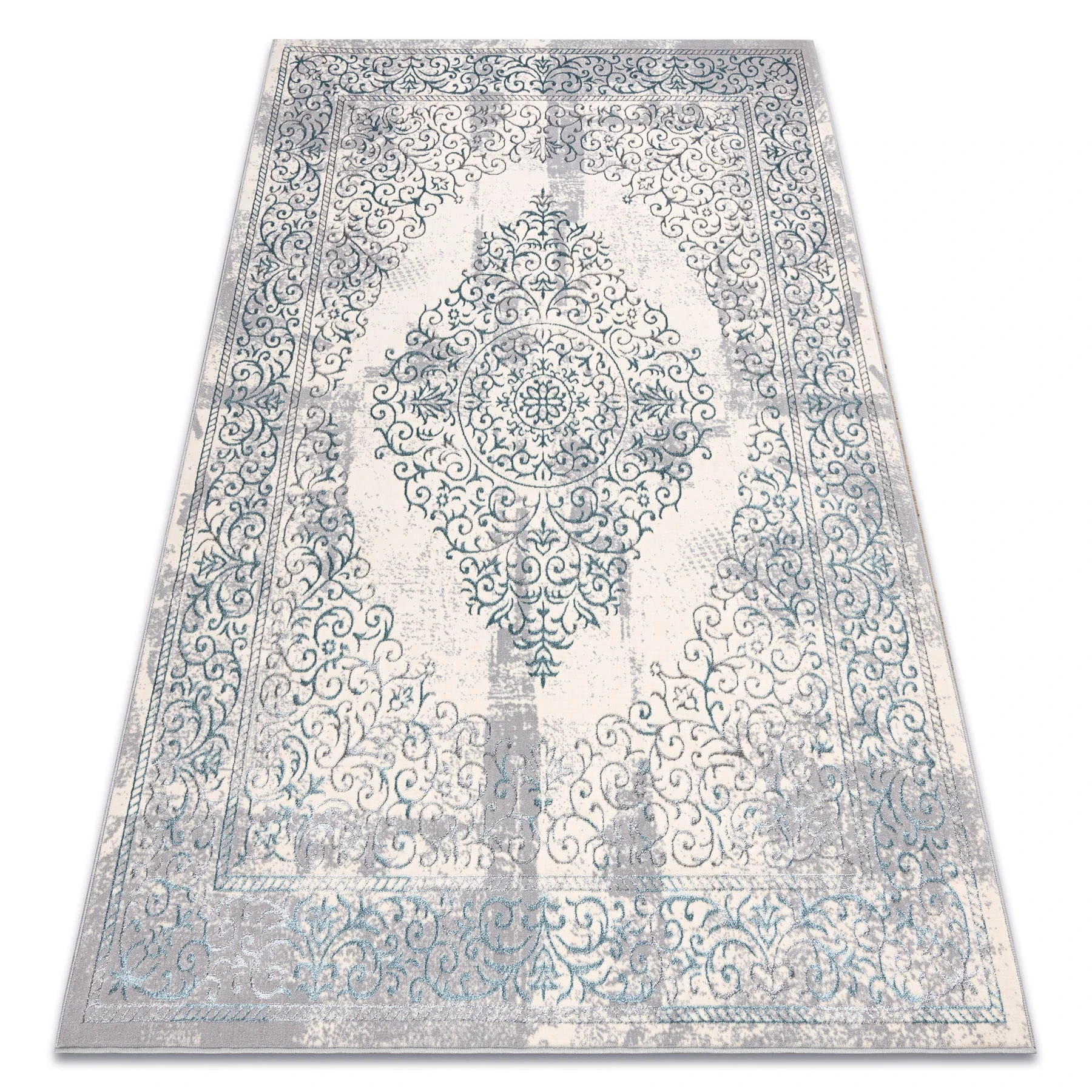 Kremowo-szary dywan z abstrakcyjnym wzorem rozety, który doda salonowi subtelnego charakteru i doskonale wpisze się w różnorodne aranżacje wnętrz.