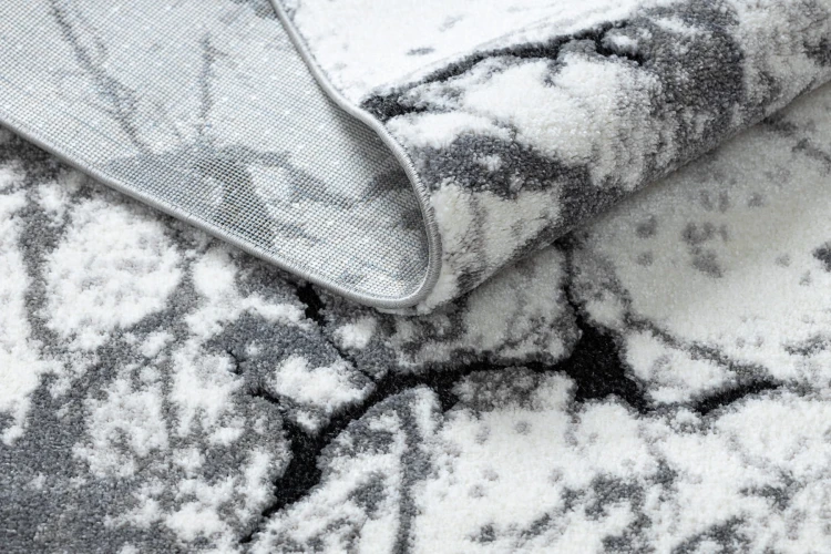 Szary dywan z abstrakcyjnym wzorem, który doskonale wpisze się w nowoczesne wnętrza, dodając im stonowanego charakteru.