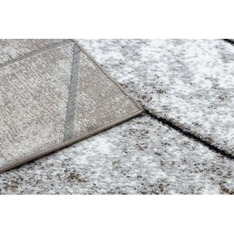 Brązowy dywan z geometrycznym wzorem, który idealnie wypełni korytarz, nadając mu nowoczesny charakter.