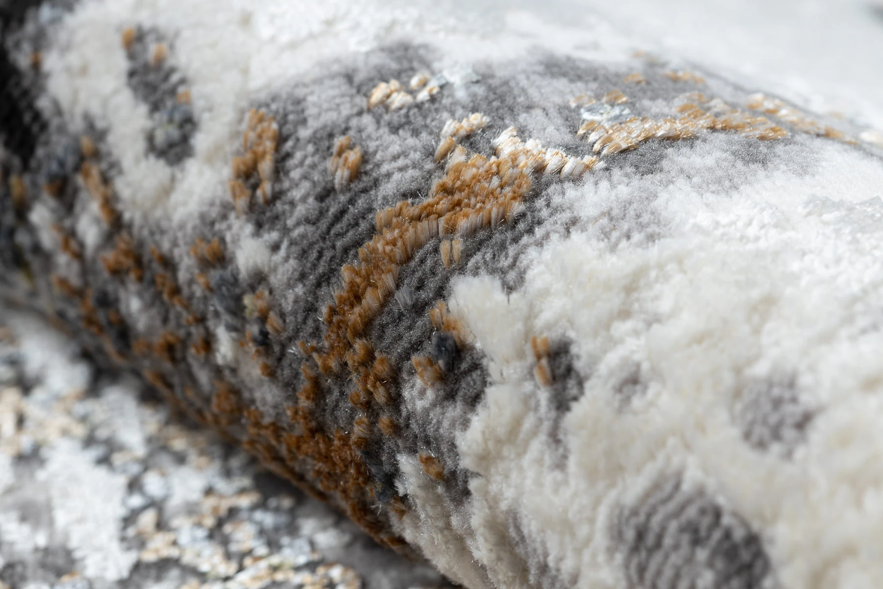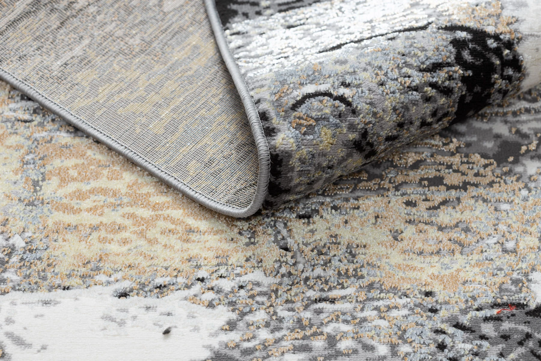 Szary dywan z abstrakcyjnym wzorem, który doda wnętrzu nowoczesny charakter i stonowaną elegancję.