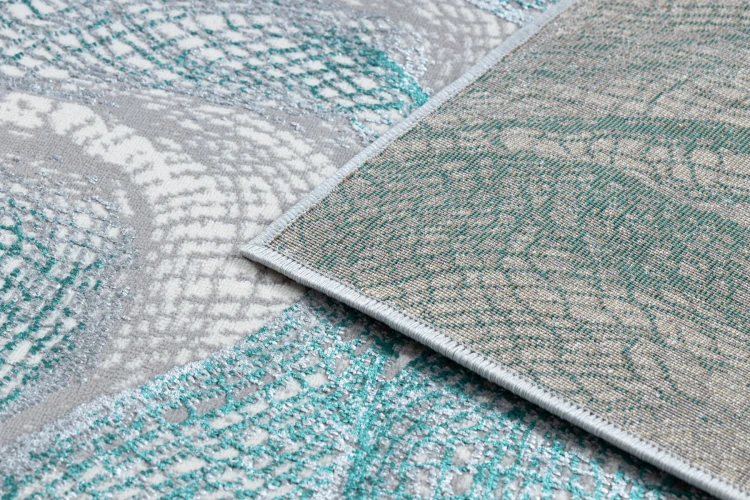 Niebieski dywan z abstrakcyjnym wzorem, który wprowadzi do wnętrza nowoczesny charakter i świeży akcent kolorystyczny.