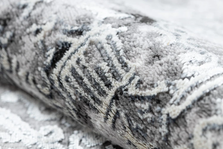 Kremowo-szary dywan z abstrakcyjnym wzorem, który doskonale wpisze się w nowoczesny salon lub pokój.