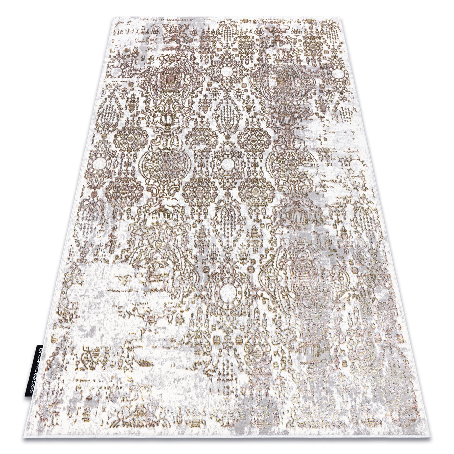 Złoto-kremowy dywan z abstrakcyjnym wzorem, który doda salonowi elegancki charakter i ciepły akcent.