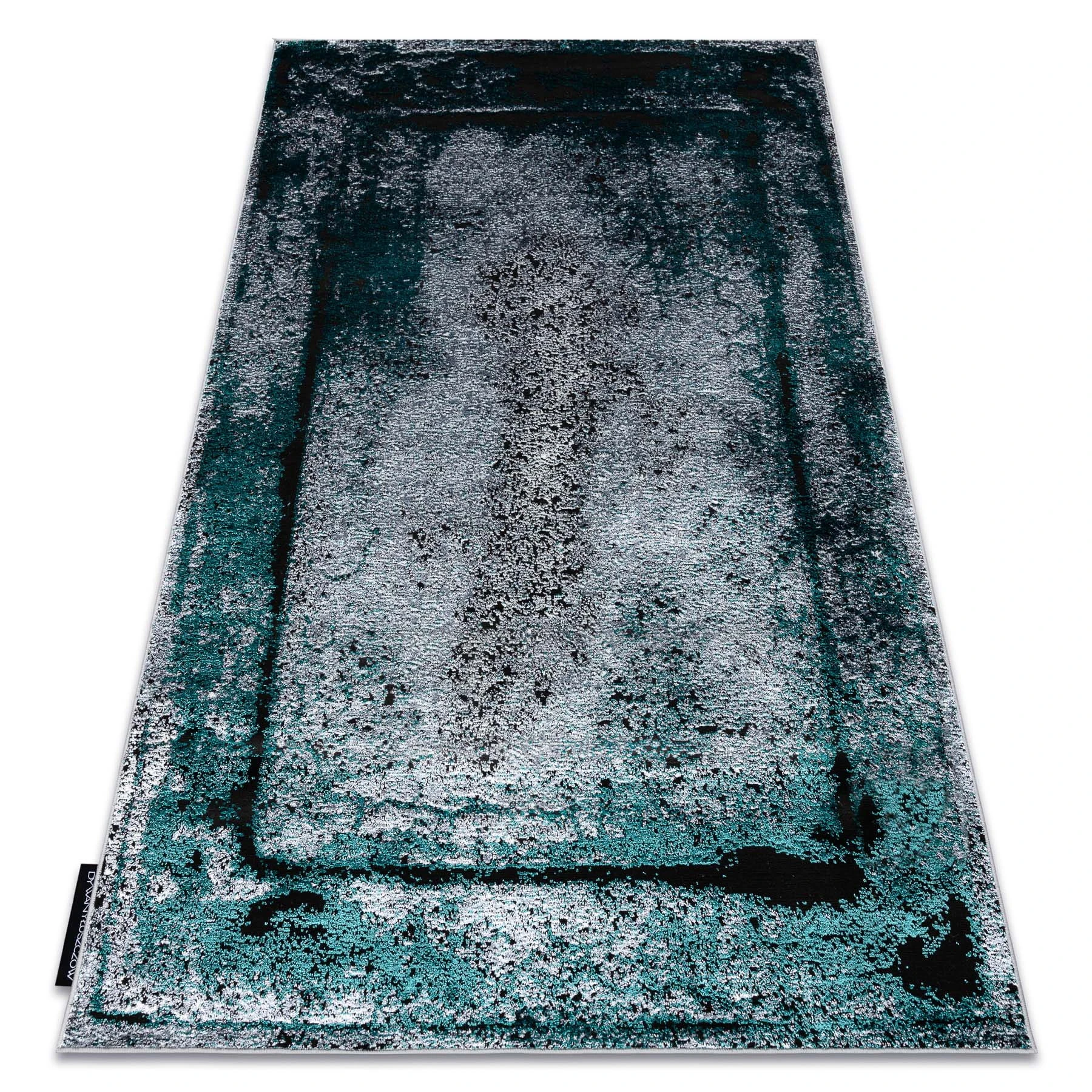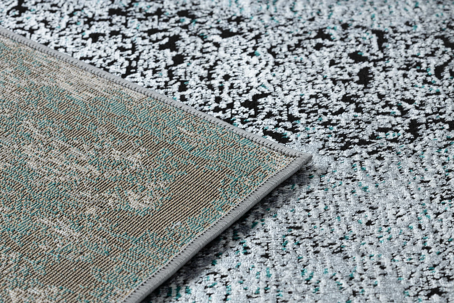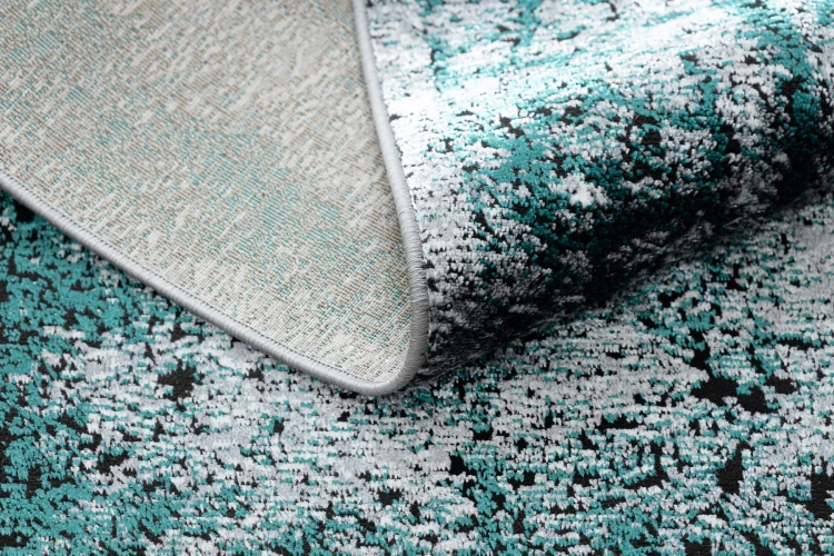Turkusowy dywan z abstrakcyjnym wzorem, który wprowadzi do wnętrza świeży, nowoczesny akcent.