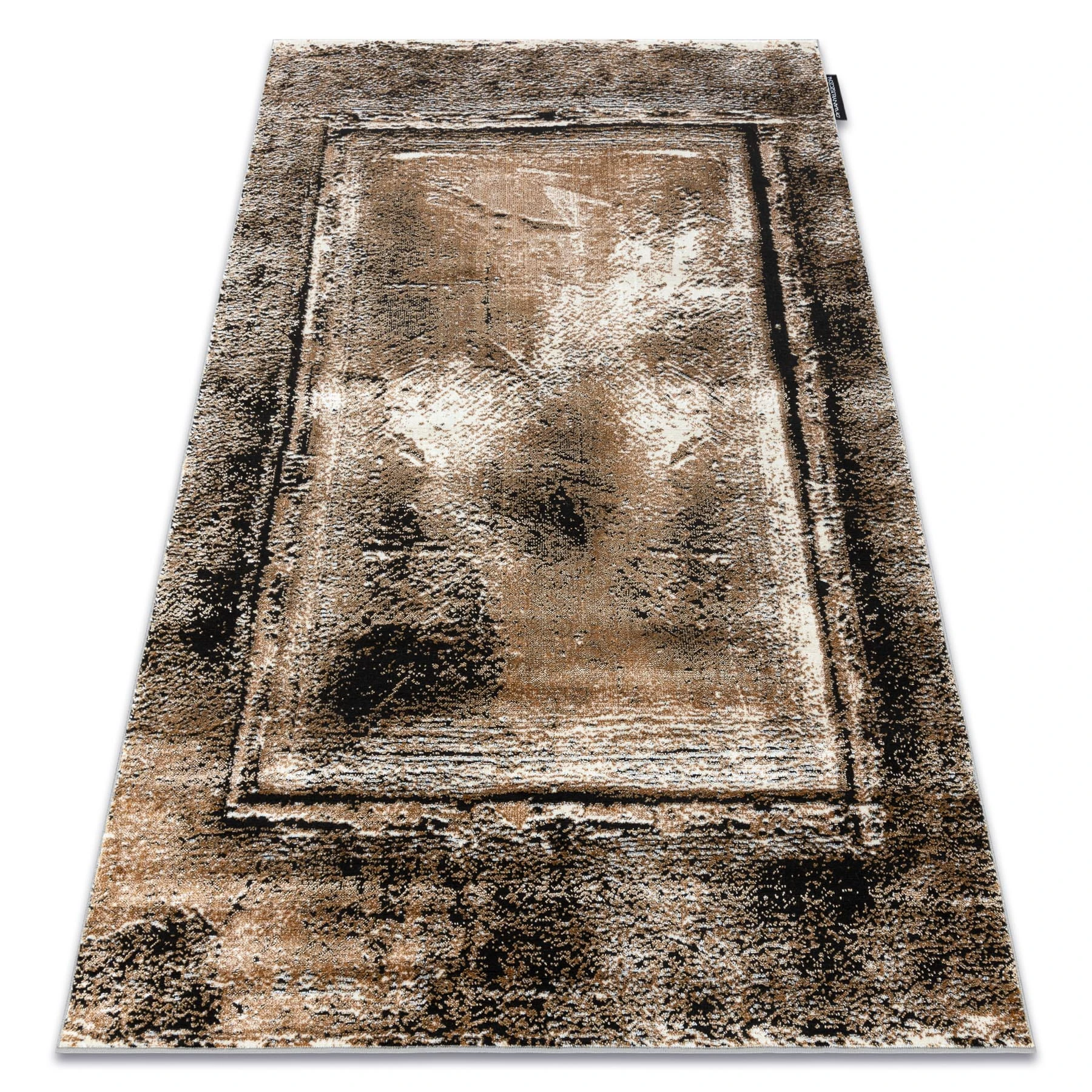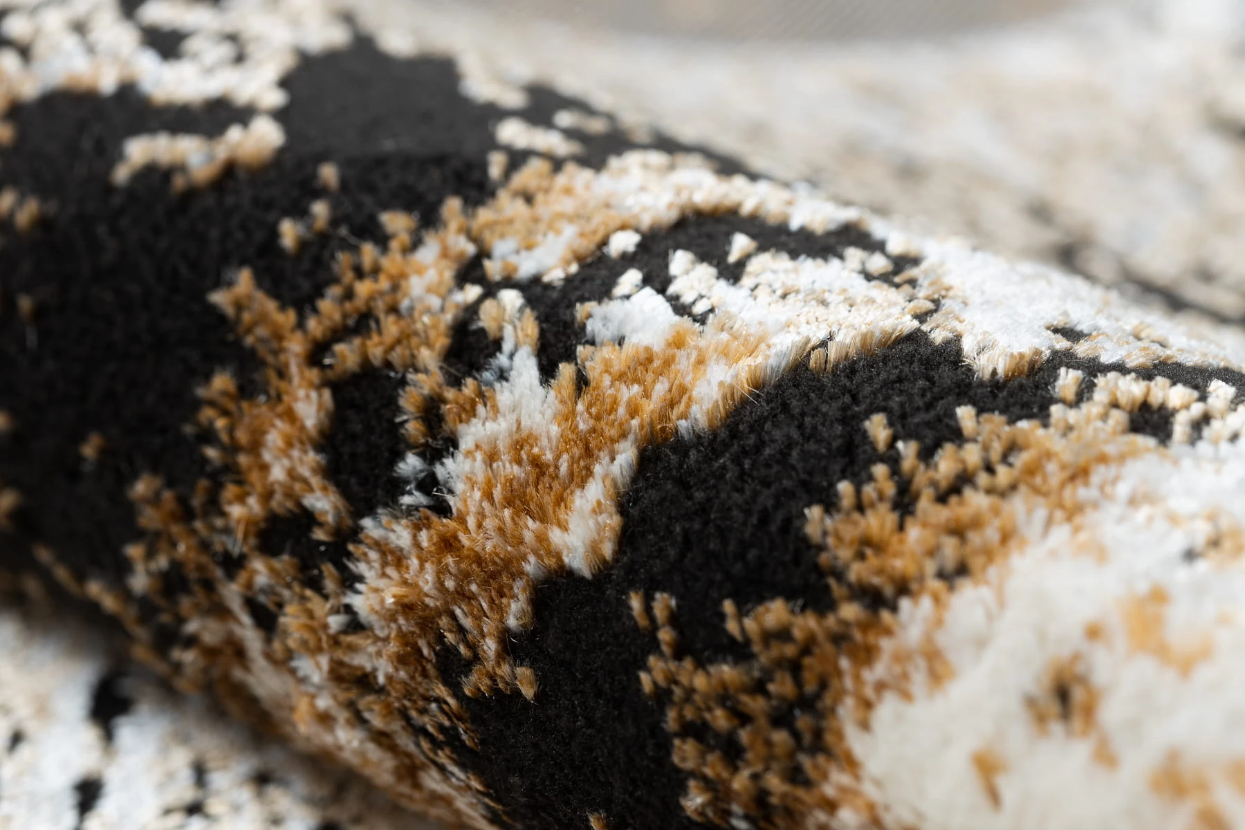 Szaro-złoty dywan z elegancką ramką, który doda wnętrzu wykwintnego charakteru i ciepłego blasku.