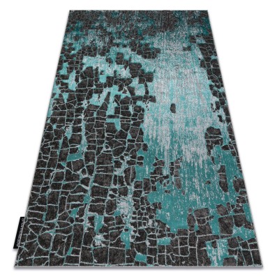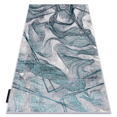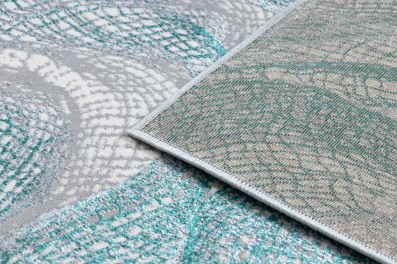 Turkusowy dywan z abstrakcyjnym wzorem, który wniesie do salonu świeży, energetyczny akcent kolorystyczny.