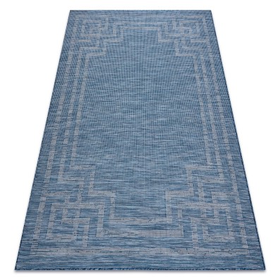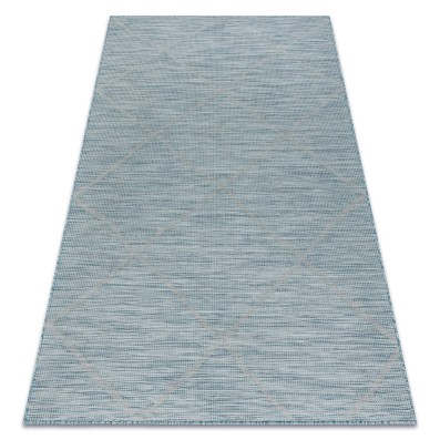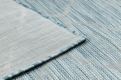 Niebieski dywan z abstrakcyjnym wzorem fal, który doda wnętrzu spokojny, morski charakter.