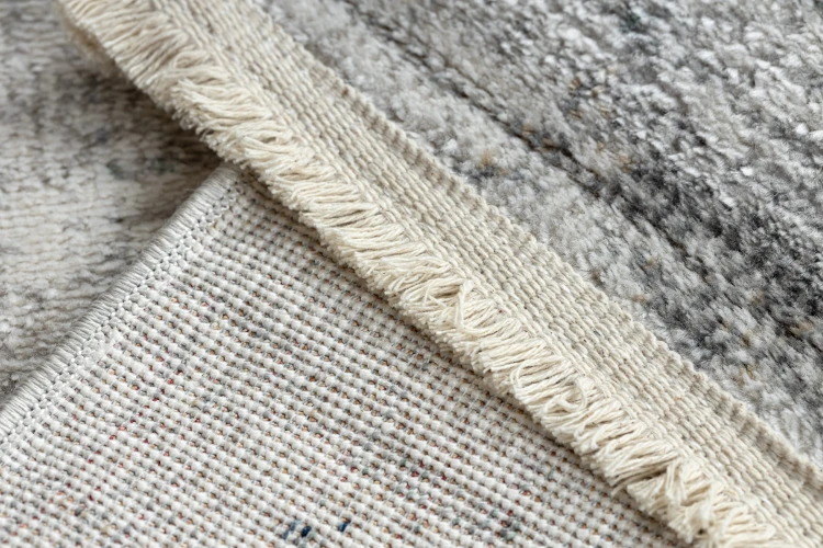 Kremowy dywan z abstrakcyjnym wzorem, który doskonale wpisze się w nowoczesne wnętrze salonu lub pokoju.