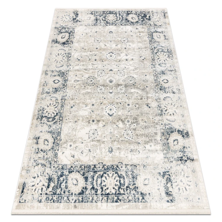Kremowy dywan z abstrakcyjnym wzorem, który doskonale wpisze się w nowoczesne wnętrze salonu lub pokoju.