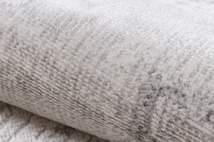 Szary dywan z abstrakcyjnym wzorem w odcieniach jasnoszarości, który doskonale wpisze się w nowoczesne wnętrza salonu lub pokoju.