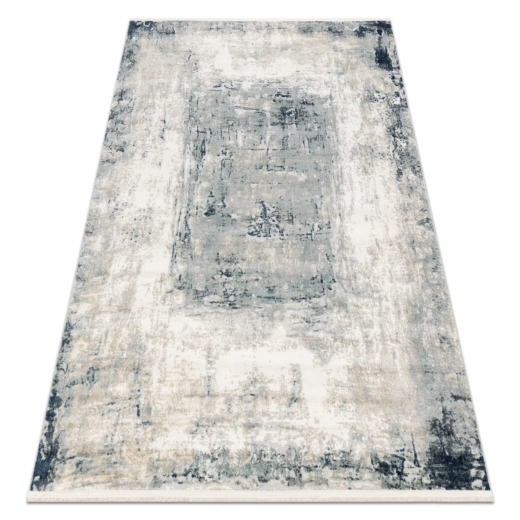 Niebieski dywan z abstrakcyjnym wzorem ramki, który wprowadzi do salonu spokojny, nowoczesny charakter.