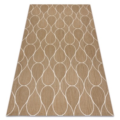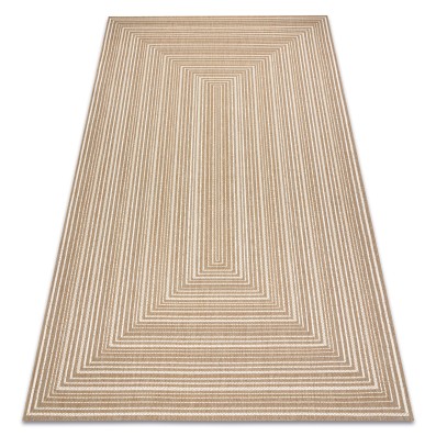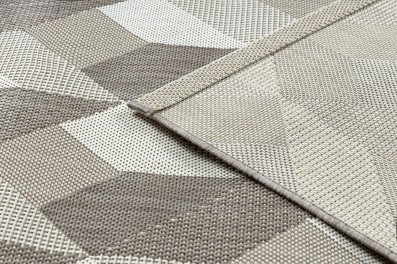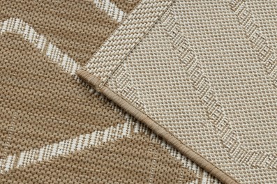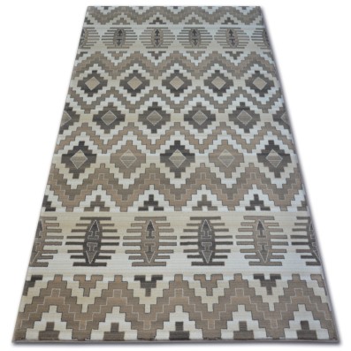 Kremowo-złoty dywan z geometrycznym wzorem, który doda salonowi eleganckiej ciepłoty i nowoczesnego charakteru.