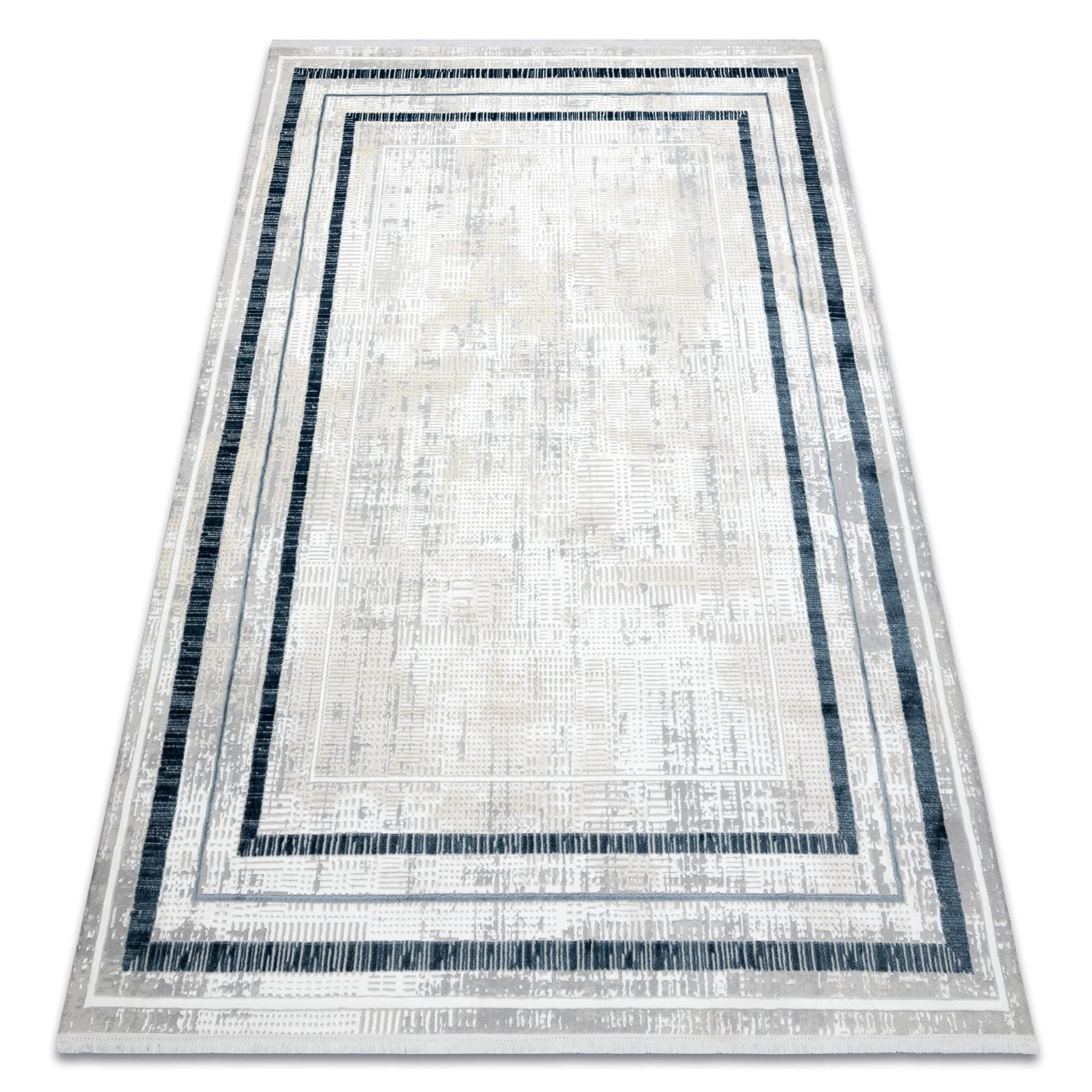 Szary dywan z delikatną ramką, który doskonale sprawdzi się w salonie lub pokoju, dodając wnętrzu stonowanej elegancji.