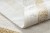 Kremowy dywan z grecką ramką w złocistych odcieniach, który nada salonowi klasyczny charakter.
