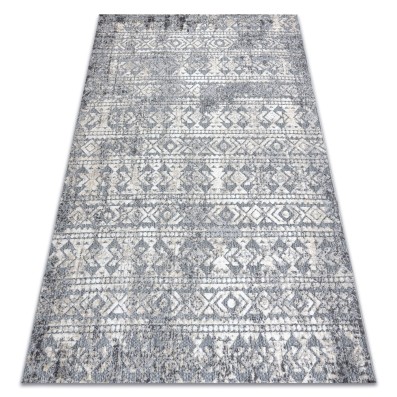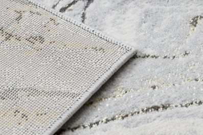 Kremowo-szary dywan z abstrakcyjnym wzorem, który doskonale wpisze się w nowoczesny salon lub pokój.