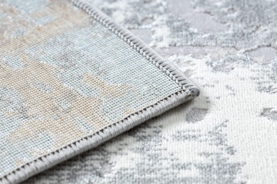 Kremowo-szary dywan z abstrakcyjnym wzorem, który doskonale sprawdzi się w korytarzu, dodając mu nowoczesnego charakteru.
