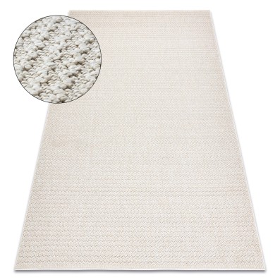 Kremowo-złoty dywan z geometrycznym wzorem, który doda salonowi elegancki charakter i ożywi przestrzeń ciepłymi akcentami.