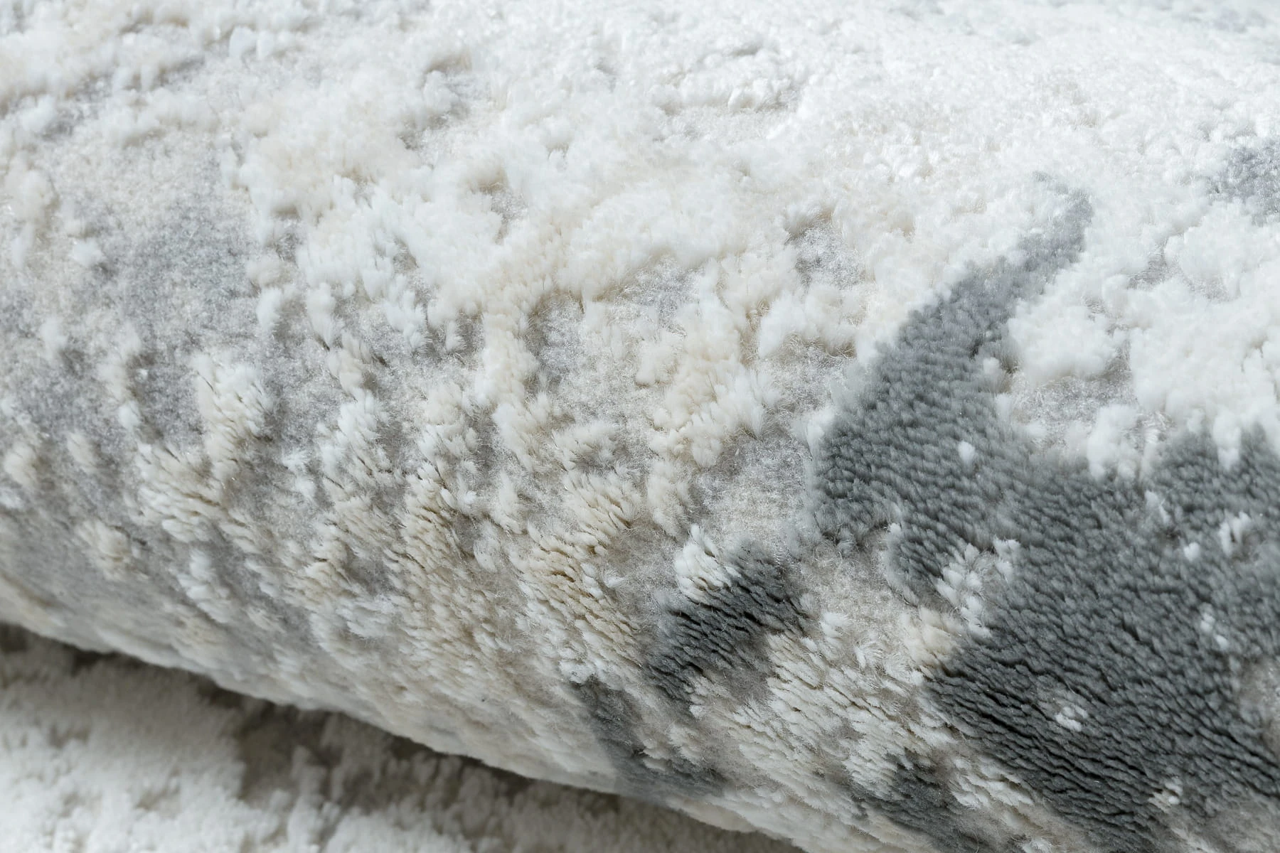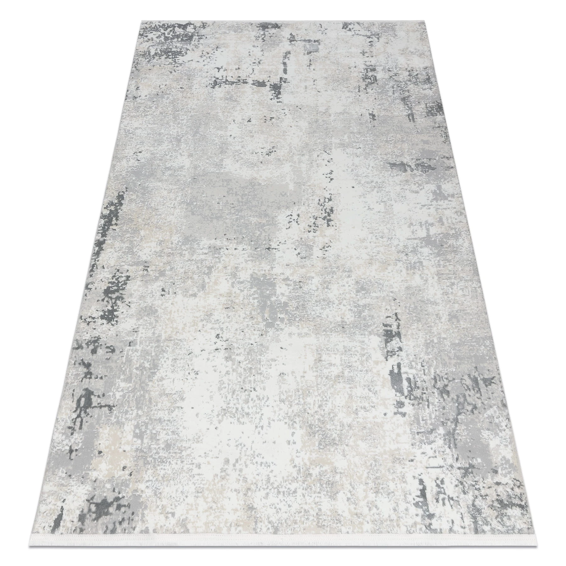 Kremowo-szary dywan z abstrakcyjnym wzorem, który doskonale wpisze się w nowoczesny salon lub pokój.