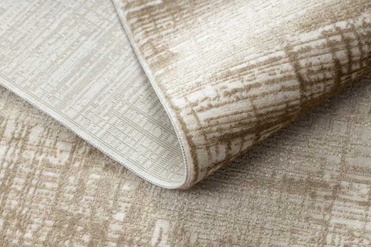 Beżowy dywan z abstrakcyjnym wzorem, który wprowadzi do salonu spokojną elegancję i subtelny charakter.